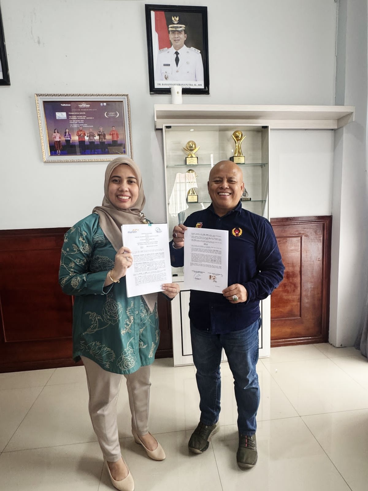 Solok, 31 Desember 2024 Pagi ini kami melakukan Penandatanganan Kerjasama dengan Bank Mandiri terkait tentang pembayaran rekening air dan beberapa kerjasama produk perbankan lainnya. Penandatangan ini dilakukan oleh Bapak Direktur (Rabbi Luski, S.E.) dengan pihak Bank Mandiri yang diwakilkan oleh